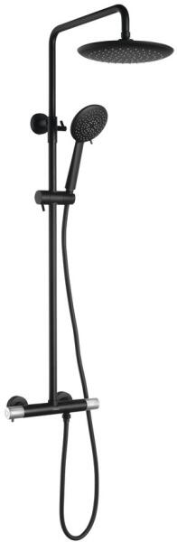 Műszaki adatok: Oszlop anyaga: rozsdamentes acél, ABS Oszlop felület: fekete Magasság: 950 mm Oszlop szélesség: 22 mm Távolság a faltól: 380 mm Szappantartó Csúszó tartó a kézfejhez Állítható tartókonzolok Esőzuhany anyaga: műanyag Esőzuhany kivitel: fekete Zuhanyfej mérete: ø220 mm Fej anyaga: műanyag A kézidarab felülete: fekete Funkciók száma: 3 Csatlakozás: G 1/2"