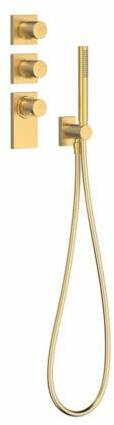 Falba építhető kivitel Tartalmazza a termosztátos belső egységet Vízkőmentesített kézi zuhannyal Szatén zuhanytömlővel Matt arany színben
