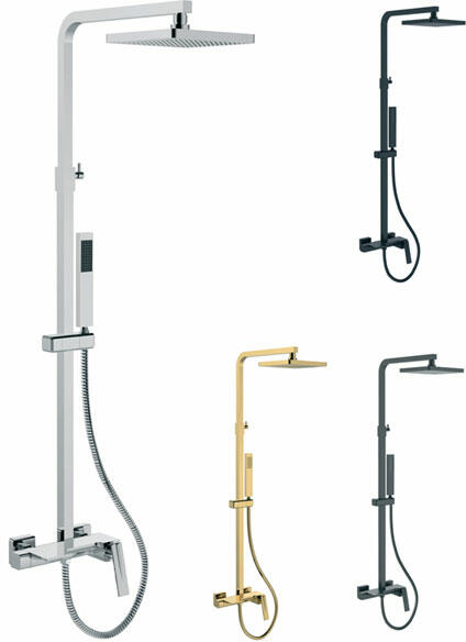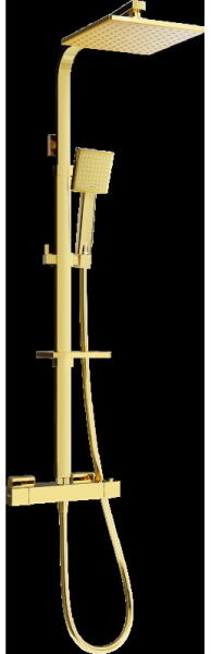 Termék leírása: A zuhanyoszlop anyaga: rozsdamentes acél A zuhanyoszlop felületkezelése: Aranyfényű Magasság: 800-1100 mm Oszlopszélesség: ø24 mm Távolság a faltól: 420 mm Csúszó kézi zuhanyfej tartó Fejzuhany anyaga: ABS Zuhanyozás: arany/fekete Fejzuhany mérete: ø225 mm Kézizuhanyfej anyaga: ABS A kézizuhanyfej kidolgozása: arany/fekete A kézizuhanyfej funkcióinak szá