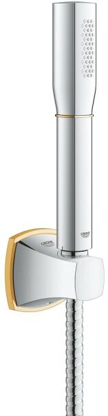 Grohe Grandera króm/arany kézizuhany fix tartóval 27993 IG0 (27993IG0) Stick kézizuhany (26 037 IG0) Fali kézizuhany tartó (27 969 IG0) Rotaflex gégecső 1500 mm (28 417 000) Egyfunkciós: Rain Fém GROHE EcoJoy ® 7.6l áramlás korlátozó GROHE DreamSpray ® tökéletes szórásért Belső WaterGuide hosszabb élettartamért GROHE CoolTouch Nincs forrázásveszély GROHE StarLight ® kr