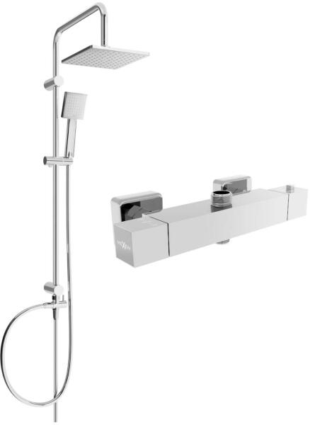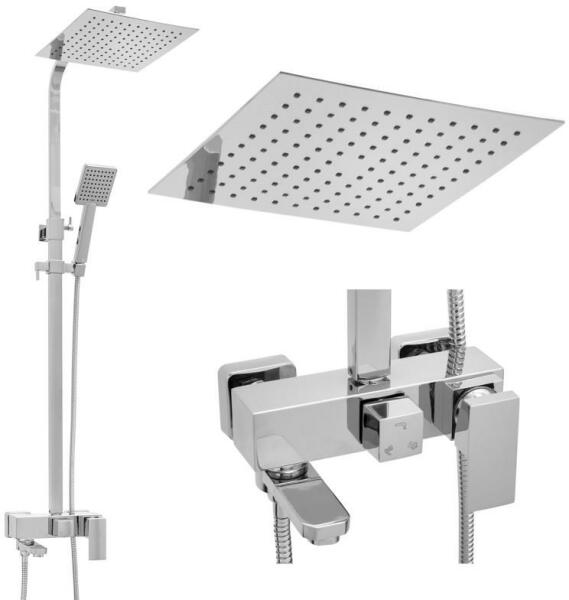 Erga Cube, zuhanygarnitúra karos csapteleppel, kád kifolyóval és esőfejjel 25x25cm, króm, ERG-YKA-BP. CUBE-25-CHR Leírás Zuhanykészlet mechanikus csapteleppel, vezérlőelemmel és vízáramlás kapcsolóval az esőzuhany, a kézi zuhanyfej és a kád kifolyója között. A készlet tartalmaz egy széles, stílusos, 25 x 25 cm-es esőzuhanyzót és egy modern ANTI-CALC rendszerrel elláto