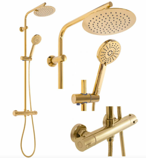 Rea Bliss falon kívüli zuhanyrendszer termosztátos fejjel, arany REA-P8806 Garancia: 24 hónap Telepítés: falon kívüli ( belső egységgel NEM rendelkezik) Anyag: sárgaréz/ABS Teljes magasság: 1000 mm Zuhanykar hossza: 300 mm Fejzuhany mérete: 200 x 200 mm Fúvóka rendszer: Anti-Calc (vízkőmentesítő) Csaptelep típusa: gombos Csaptelep szerelési távolsága: 150 mm Zuhanyszettel Z