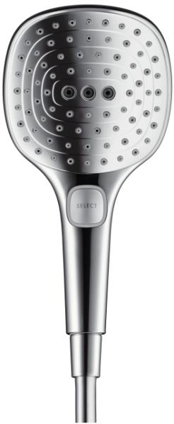 Hansgrohe Raindance Select 120 3Jet króm kézizuhany 26520 000 (26520000) zuhanyfej mérete: 120 mm Select gomb segítségével kiválasztható vízsugár 3 sugárfajta: Rain, RainAir, WhirlAir kiöblíthető szűrő átfolyós vízmelegítőkhöz is használható csatlakozócső: G ½ maximális átfolyási mennyiség: 16 l/perc (3 bar nyomásnál)