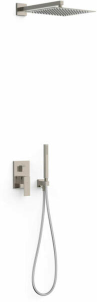 Falba építhető kivitel Tartalmazza a belső egységet Egykaros, kétutas zuhanycsaptelep 300 x 300 mm-es fali rozsdamentes acél fejzuhany gömbcsuklóval Vízkőmentesít ett kézi zuhannyal és fali tartóval Szatén zuhanytömlővel Rozsdamentes acél színben