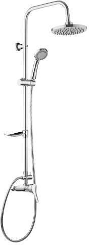 Kivitelezés: króm|Csapteleppel|Rúdmagasság: 950 mm|Kerek zuhanyfej|Zuhanyfej átmérője: 200 mm|Esőztető zuhanyfej|5 funkciós kézizuhany|Áramlások típusai: esőztető, hidromasszázs, 2 x kevert, vízköd|Funkcióváltó: mechanikus|Csaptelep típusa: egykaros, keverő