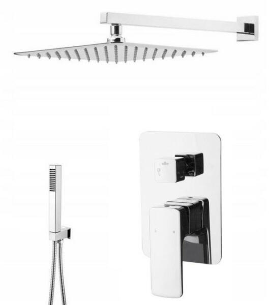 Gamma ZN6 falsík allati zuhanyszett. A készlet tartalmazza a váltókapcsolós csaptelepet, a kézizuhanyt gégecsővel és fali rögzítővel, valamint az esőztető fejzuhanyt a zuhanykarral. Szögletes formavilág, kiváló eleme egy modern vagy minimál stílusú fürdőszobának. Paraméterek: zuhany csaptelep (falsík alattikerámia fejjel) 37 cm-es fali zuhanykar 25x25 cm-es esőztető, u