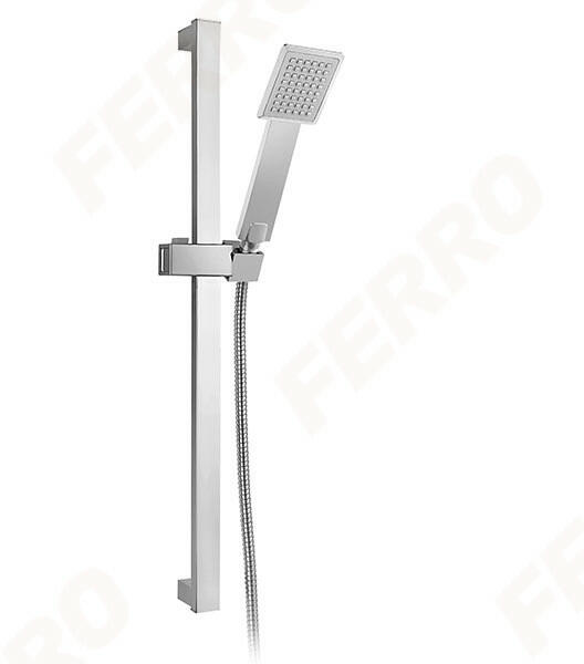 fém zuhanyrúd hossza: 65,5 cm 1 funkciós kézizuhany funkció: eső Ferro Easy Clean System - a vízkőlerakódás könnyű eltávolításához a kézizuhany fúvókáiból PVC zuhanycső hossza: 150 cm csavarodásmentes, kónuszos vég króm felület