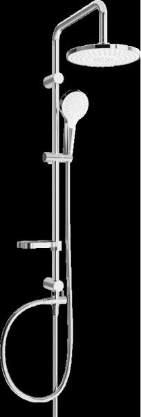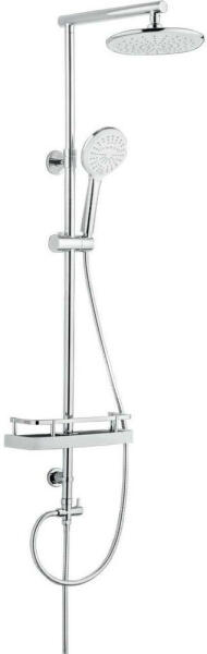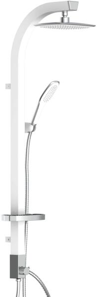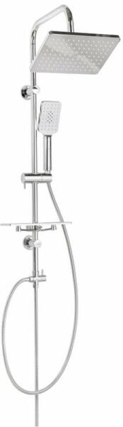 Invena NYKS zuhanyrendszer zuhanypolccal, 3 funkciós kézizuhannyal, króm AU-32-001-G Tulajdonságok Fejzuhany mérete: 260x190 mm Kinyúlási hossz: 390 mm Zuhanyoszlop magassága: 960 mm Zuhanygégecső hossza: 1500 mm Zuhanyfej anyaga: ABS Zuhanyrúd anyaga: rozsdamentes acél Zuhanyfúvóka anyaga: gumi Zuhanytömlő anyaga: acél Gombbal állítható kézizuhanytartó Állítható tartókon